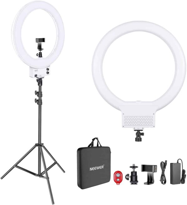 Luce LED Anulare Bianca con Cavalletto Dimmerabile 42W 3200-5600K con Filtri Colorati Hotshoe & Supporto Clip per Smartphone: 85,99€
