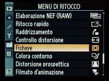 Una funzione particolarmente utile quando si ha la necessità di modificare alcuni parametri sulla fotografia finale ma non si ha il tempo (o la voglia) di utilizzare un personal computer. Questo menu permette l’accesso ad una vasta gamma di opzioni che fanno della D5000 uno strumento particolarmente interessante dal punto di vista dell’editing di post produzione